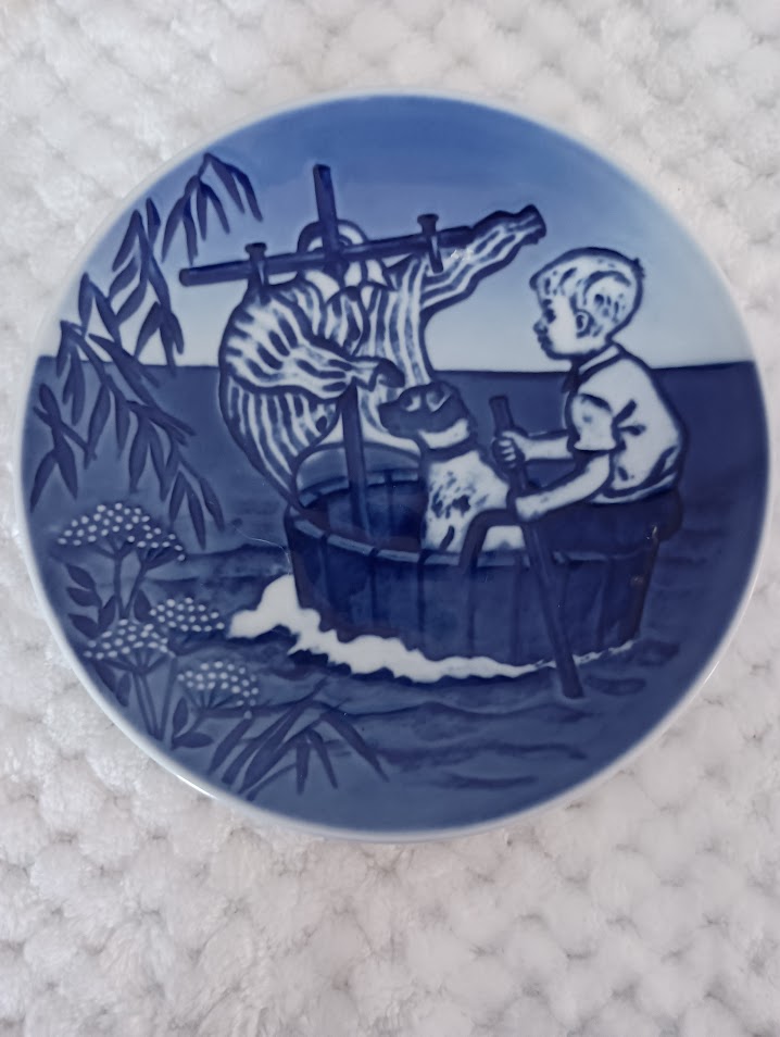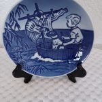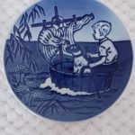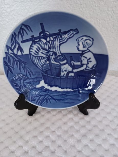 6″ across this plate was designed and produced as an annual limited edition by Bing & Grondahl Copenhagen Porcelain Demark. This plate is dated 1990. There are holes on the back for hanging or display on stand.