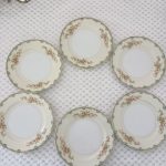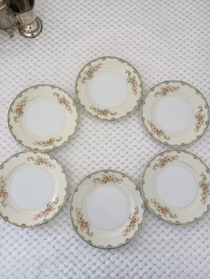 Set of six, hand painted floral design with gold trim. Made in Japan.
