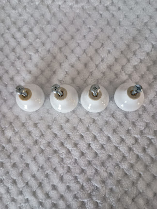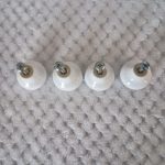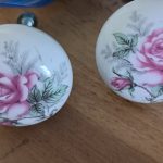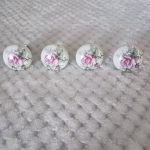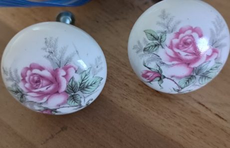 White knobs with pink roses.
